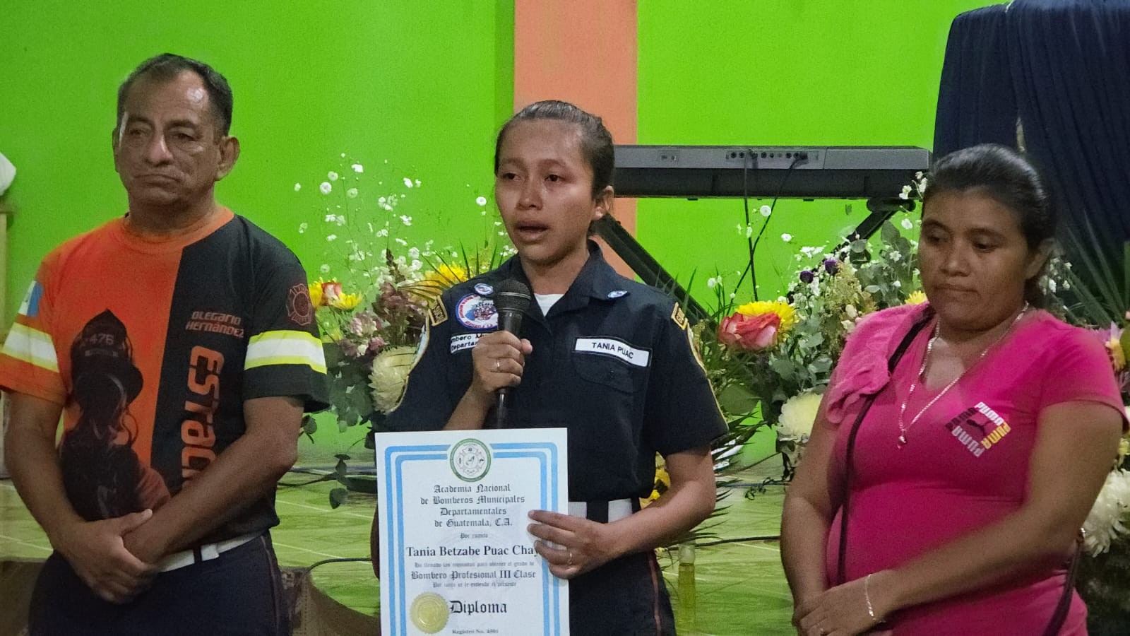 Con una actividad de acción de gracias, la joven Tania Puac, de 20 años, originaria del municipio de Cuyotenango, Suchitepéquez, junto a familiares y amigos festejó haber alcanzado su meta de graduarse como bombero profesional. Este era un sueño que Tania tenía hace años.