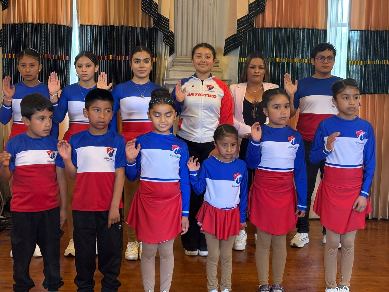 En el salón de honor de la Municipalidad de Quetzaltenango se juramentó a los deportistas que representarán a Quetzaltenango en el festival de Patinaje Artístico que se realizará este sábado 18 de abril en la ciudad de Guatemala.
