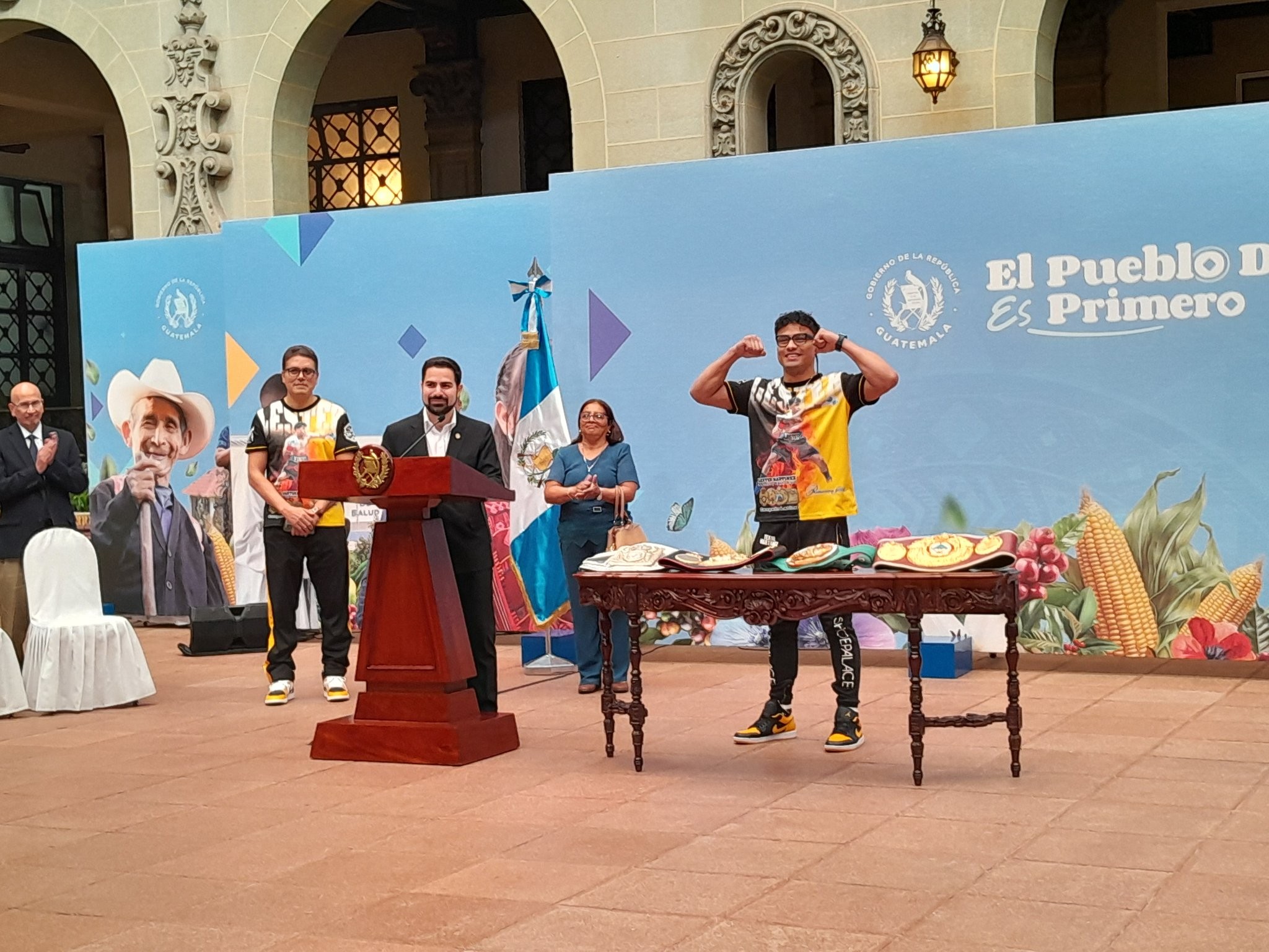 El boxeador guatemalteco Lester Martínez visitó el Palacio Nacional de la Cultura, donde se reunió con el presidente Bernardo Arévalo.