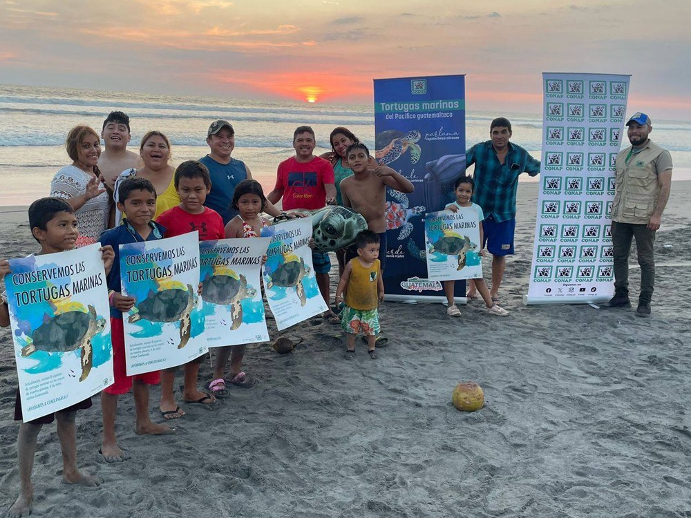 la comunidad y la UGAM de Mazatenango, en el Tortugario Tahuesco de El Rosario.