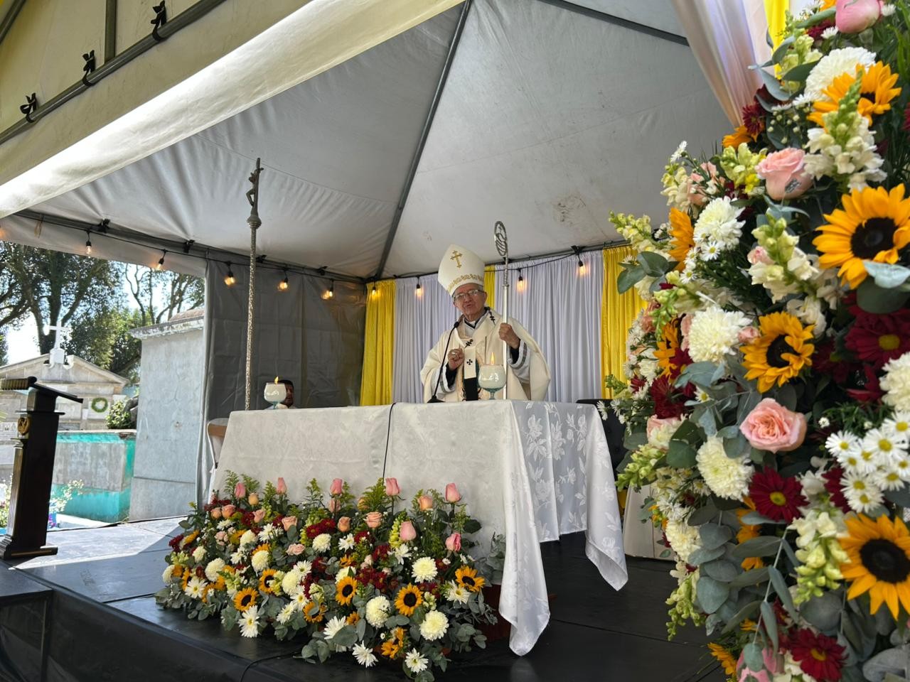 Como parte de la conmemoración, en el Cementerio se realizó una misa en honor a los fieles difuntos y esta estuvo presidida por el monseñor Víctor Hugo Palma, quien bendijo las velas que fueron entregadas a los presentes.