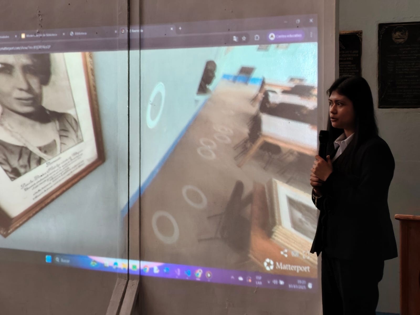 También se presentó un mapa virtual elaborado por los practicantes, que permite recorrer de forma digital las distintas áreas y rincones de la biblioteca. A esto se suma la creación de una página web que integra datos curiosos, secciones informativas y galerías sobre figuras representativas como Pequeña Flor del Pueblo, Niña Quetzaltenango y Umial Tinimit, entre otros elementos icónicos.