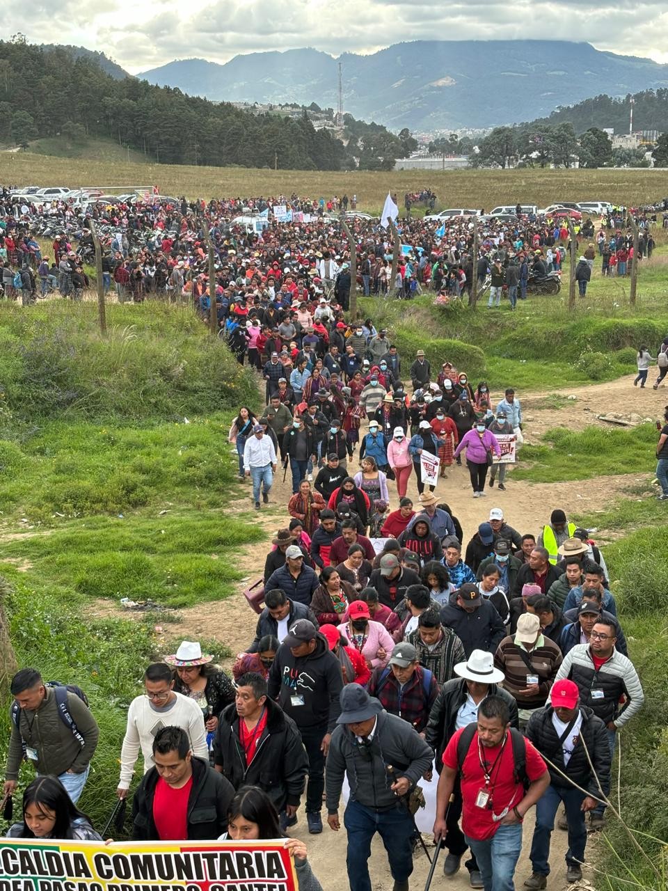 Más de cinco mil personas acudieron a la comunidad de Llanos de Urbina, Cantel, el sábado reciente para participar en una marcha pacífica en contra de la instalación de un templo que venera a la Santa Muerte.