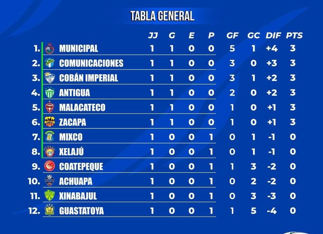 El domingo se completó la jornada con la victoria de Zacapa 1-0 ante Mixco y el triunfo de Cobán Imperial de visita ante Coatepeque, que fue el único equipo local que perdió.