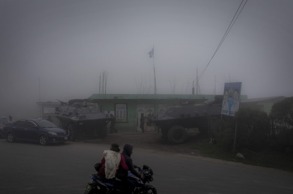 El Punto de Observación y Control – POC – ubicado en la cumbre de Tajumulco, donde dos tanquetas del ejército tratan de garantizar una paz más aparente que real entre las áreas conflictuales de Tajumulco e Ixchiguán. Fotografía: Simone Dalmasso.
