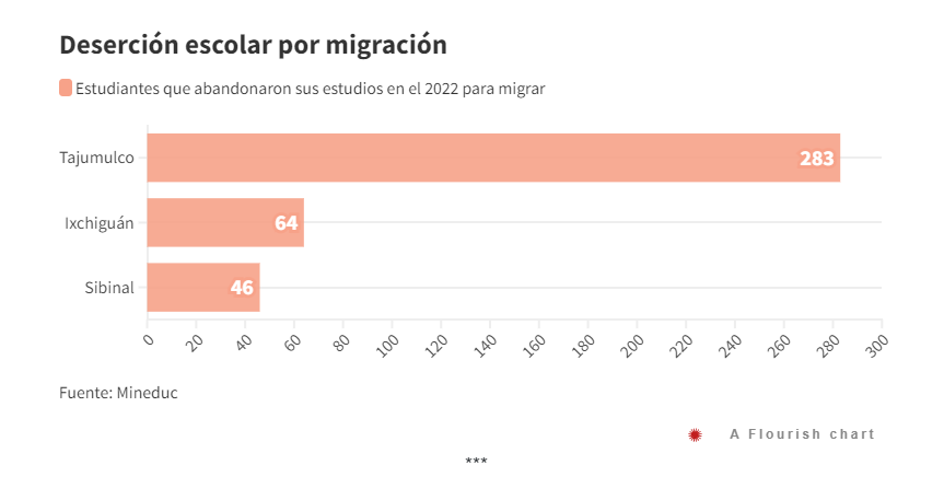 De acuerdo con la base de datos que entregó el Ministerio de Educación, a través de una solicitud de información pública, en Ixchiguán y Tajumulco, el 45 % de los estudiantes de párvulos, primaria, básico y diversificado que abandonan sus estudios, lo hacen por una migración temporal. En Sibinal el porcentaje es menor, un 21 %.