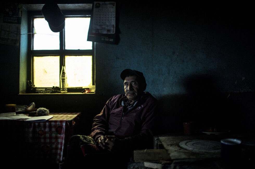 Regino García Velásquez, 73, en su casa. Agricultor y comunicador, es miembro del Consejo de Autoridades Mam del área. Fotografía: Simone Dalmasso.