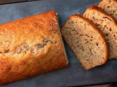 Un postre simple típico de la cocina guatemalteca, el pastel de banano es un bizcocho de banano hecho en casa. Con un sabor suave a banana y una sutil dulzura, el pastel se hace típicamente con una combinación de bananos (tanto en puré como en rodajas), harina, huevos, mantequilla, bicarbonato de sodio, azúcar y sal.
