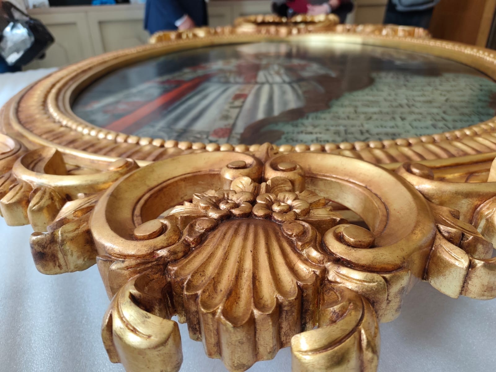 Luego de un cuidadoso proceso de limpieza, estabilización y aplicación de nuevos materiales de conservación, la pintura recuperó su brillo y equilibrio visual. También se sustituyó el marco, que se encontraba completamente deteriorado.