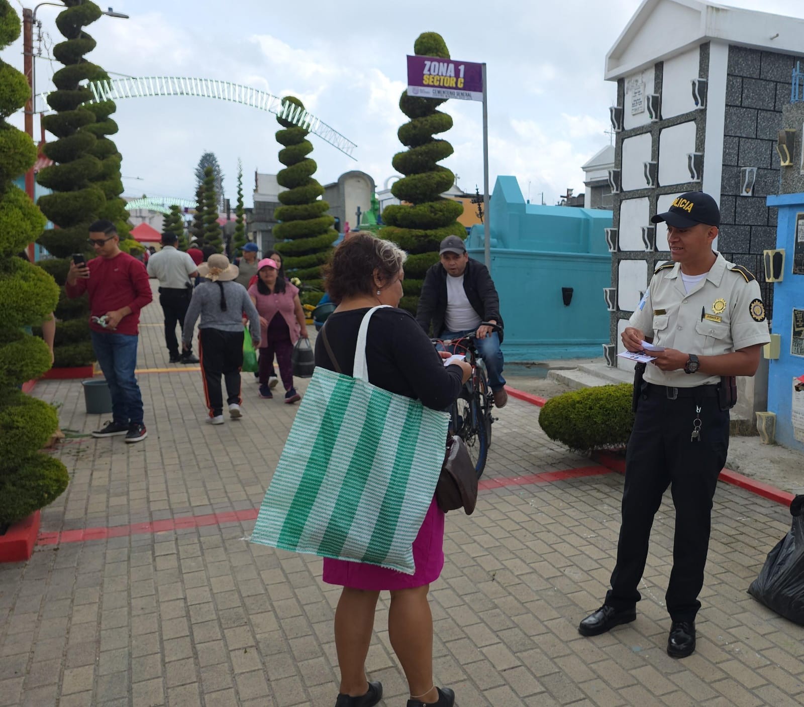 Con motivo de las actividades conmemorativas del Día de Todos los Santos y Día de los Fieles Difuntos, la Policía Nacional Civil (PNC) implementó un plan de seguridad en el cementerio municipal de San Pedro Sacatepéquez, San Marcos, con el objetivo de garantizar el orden, prevenir hechos delictivos y brindar apoyo a los visitantes.