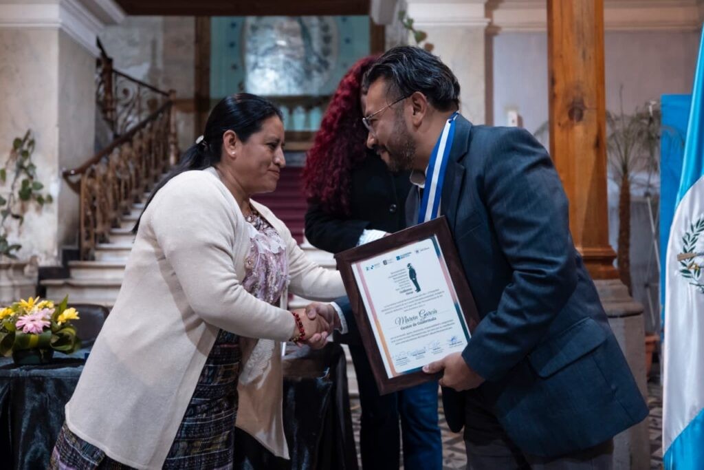 La entrega se realizó en la Casa Aparicio, sede de Gobernación Departamental de Quetzaltenango, con la participación de la directora general de las Artes, Ana Castañeda, y la gobernadora departamental, Bibiana Ramírez, en el marco de la primera edición de este galardón, impulsado por el programa Iberescena.