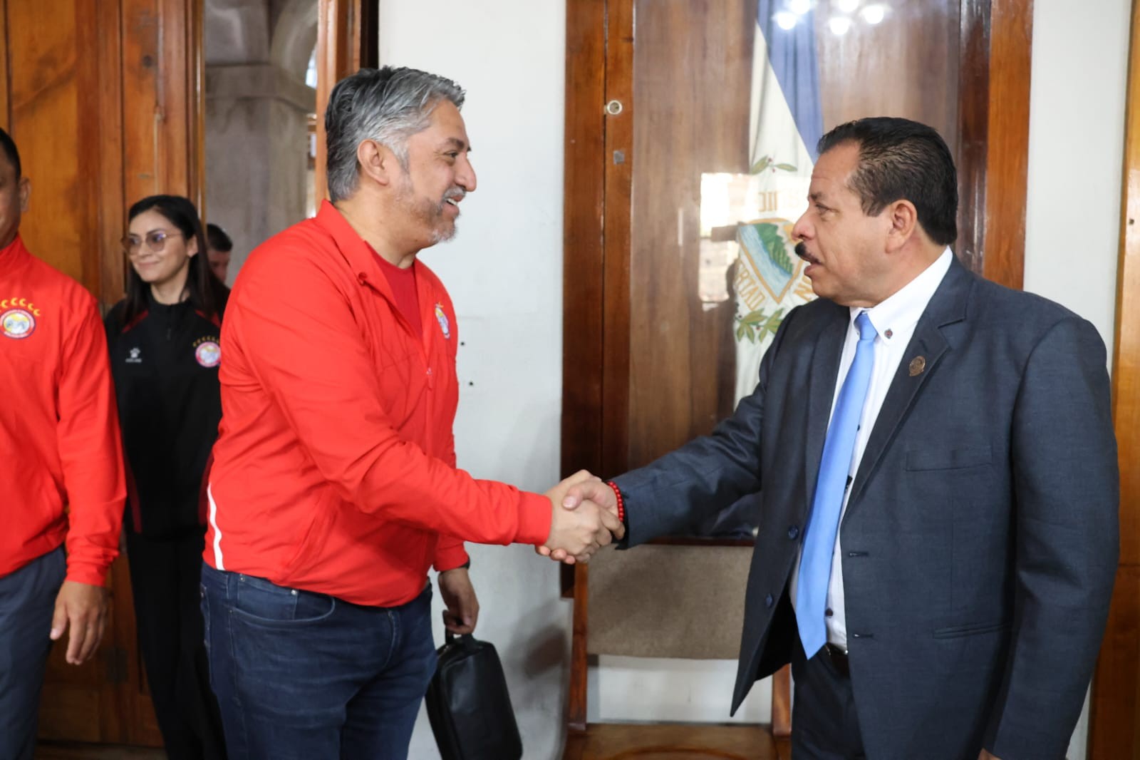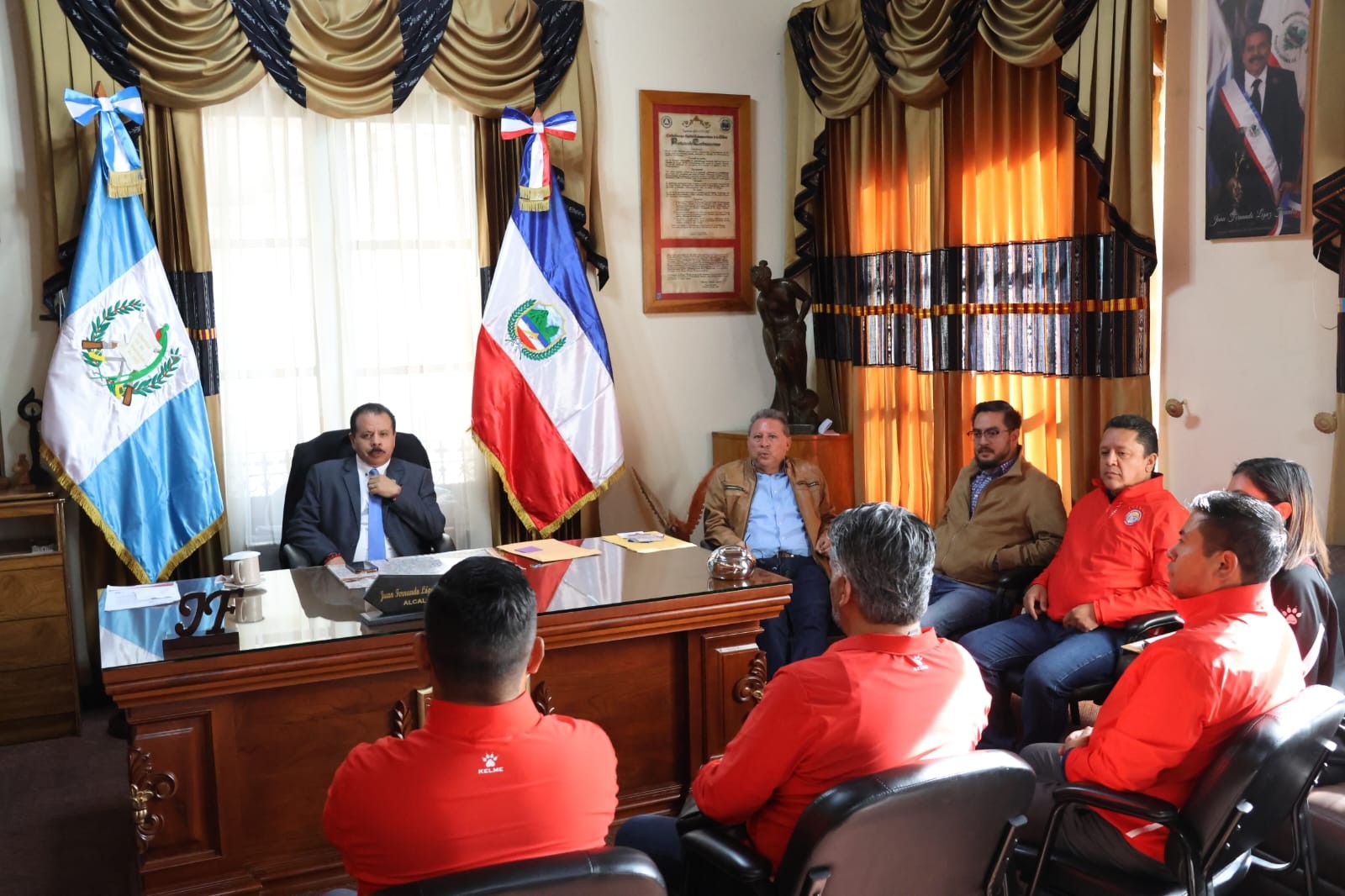 Integrantes de la junta directiva del Club Xelajú MC visitaron este jueves la Municipalidad de Quetzaltenango, donde sostuvieron una reunión con el alcalde Juan Fernando López.