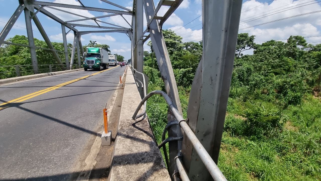 El puente Ixtacapa que se encuentra a la altura del km 151 de la ruta CA2, entre el límite de San Bernardino y San Antonio, Suchitepéquez; se encuentra dañado por el fuerte accidente que ocurrió ayer por la mañana donde un hombre tuvo que ser rescatado con equipo hidráulico.