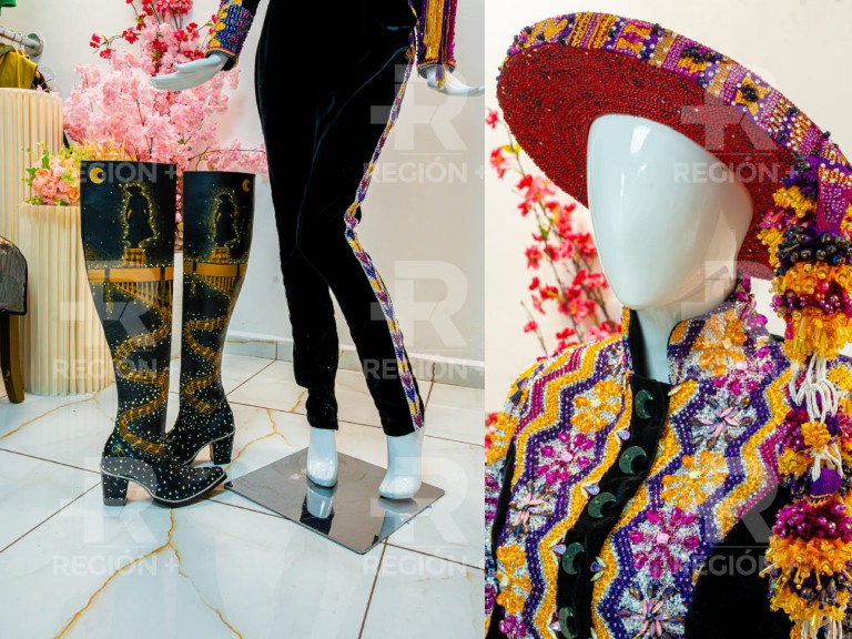 Las botas, descritas por Gerra como “una obra de arte”, llevan pintada la silueta del monumento a la Marimba, creación del maestro Rodolfo Galeotti Torres, acompañada por notas del himno “Luna de Xela”, pintadas al óleo por el artista José Jorge Asturias. La confección del traje estuvo a cargo de José Gómez, quien fusionó técnica y tradición.