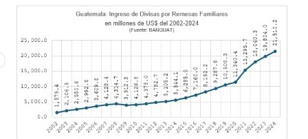 Las remesas familiares representan uno de los pilares fundamentales de la economía guatemalteca, con un impacto profundo tanto a nivel macroeconómico como en el bienestar de millones de hogares. Los montos de recepción en los últimos 23 años son los siguientes: