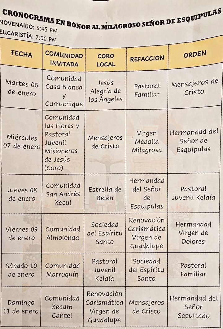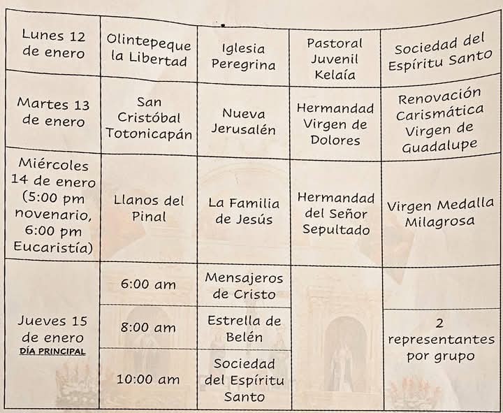 Esta es la agenda de actividades religiosas que dieron inicio el 6 de enero y continúan hasta el 15 de este mes: