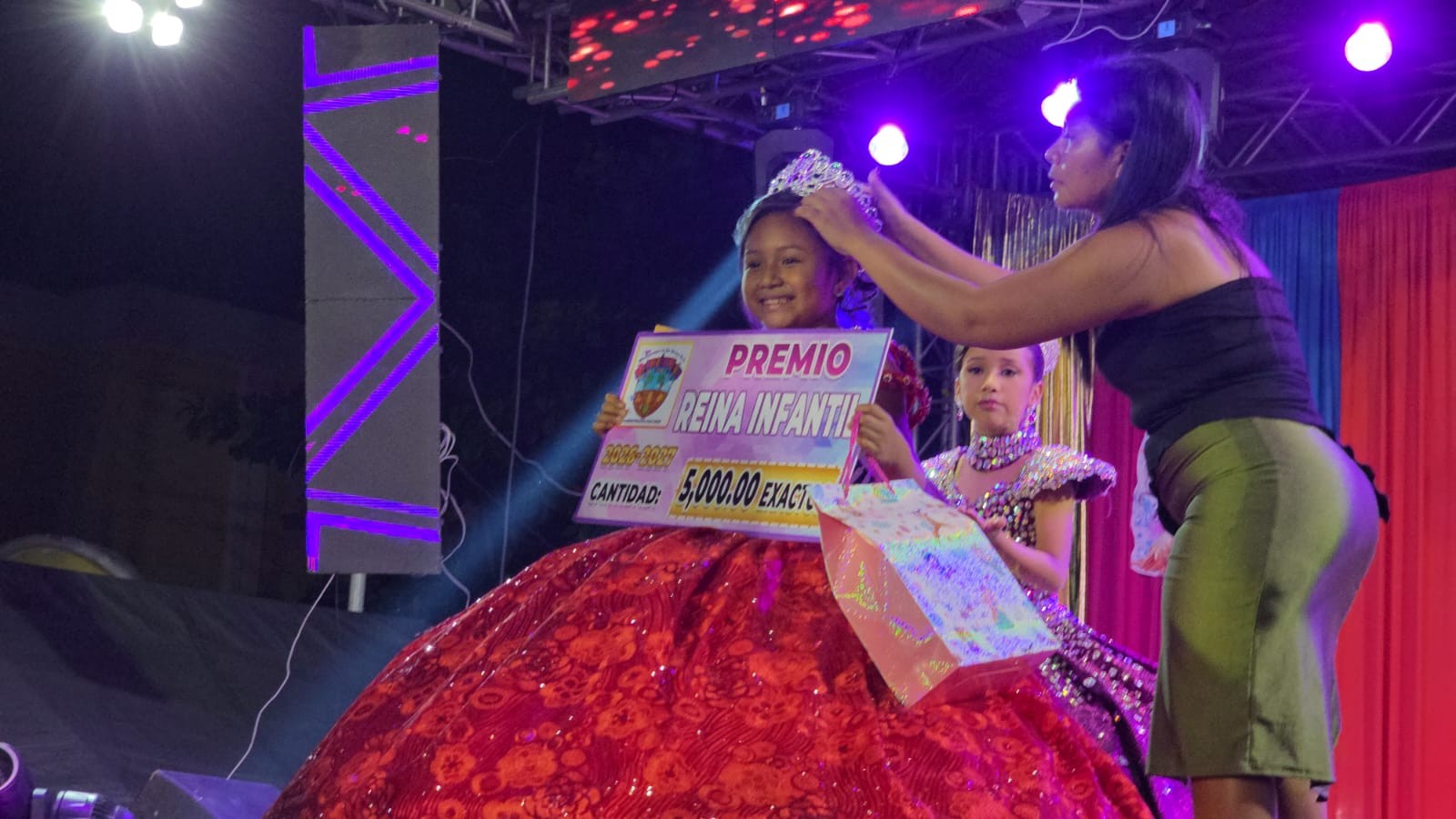 La velada se llenó de colorido y entusiasmo con la participación de cuatro niñas, quienes deslumbraron al público con su belleza, ternura y talento sobre el escenario. Ante una gran multitud que se dio cita para apoyar a sus favoritas, las pequeñas candidatas demostraron una excelente preparación, dificultando la decisión del jurado calificador.