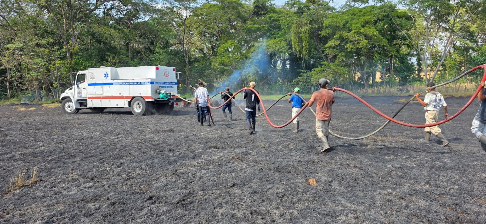 Según informó Esvin Barrios, integrante de Bomberos Municipales de Las Delicias, el control del incendio fue posible también gracias al apoyo de trabajadores de la finca, quienes colaboraron activamente en las tareas de liquidación. El fuego ya había abarcado una amplia extensión y amenazaba con extenderse a otras propiedades.