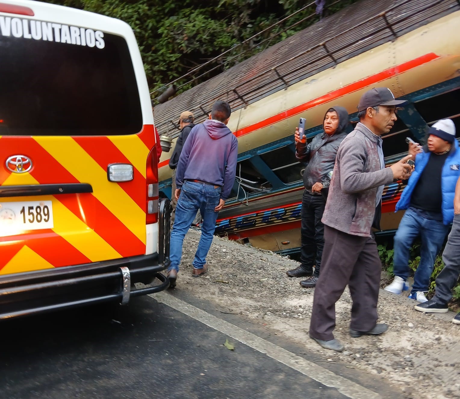 El primero de ellos ocurrió en el kilómetro 107, donde un bus de transporte extraurbano sufrió un accidente, el cual dejó al menos 12 personas heridas, entre ellos el piloto, quien fue rescatado con equipo hidráulico. La unidad quedó a un costado de la carretera.