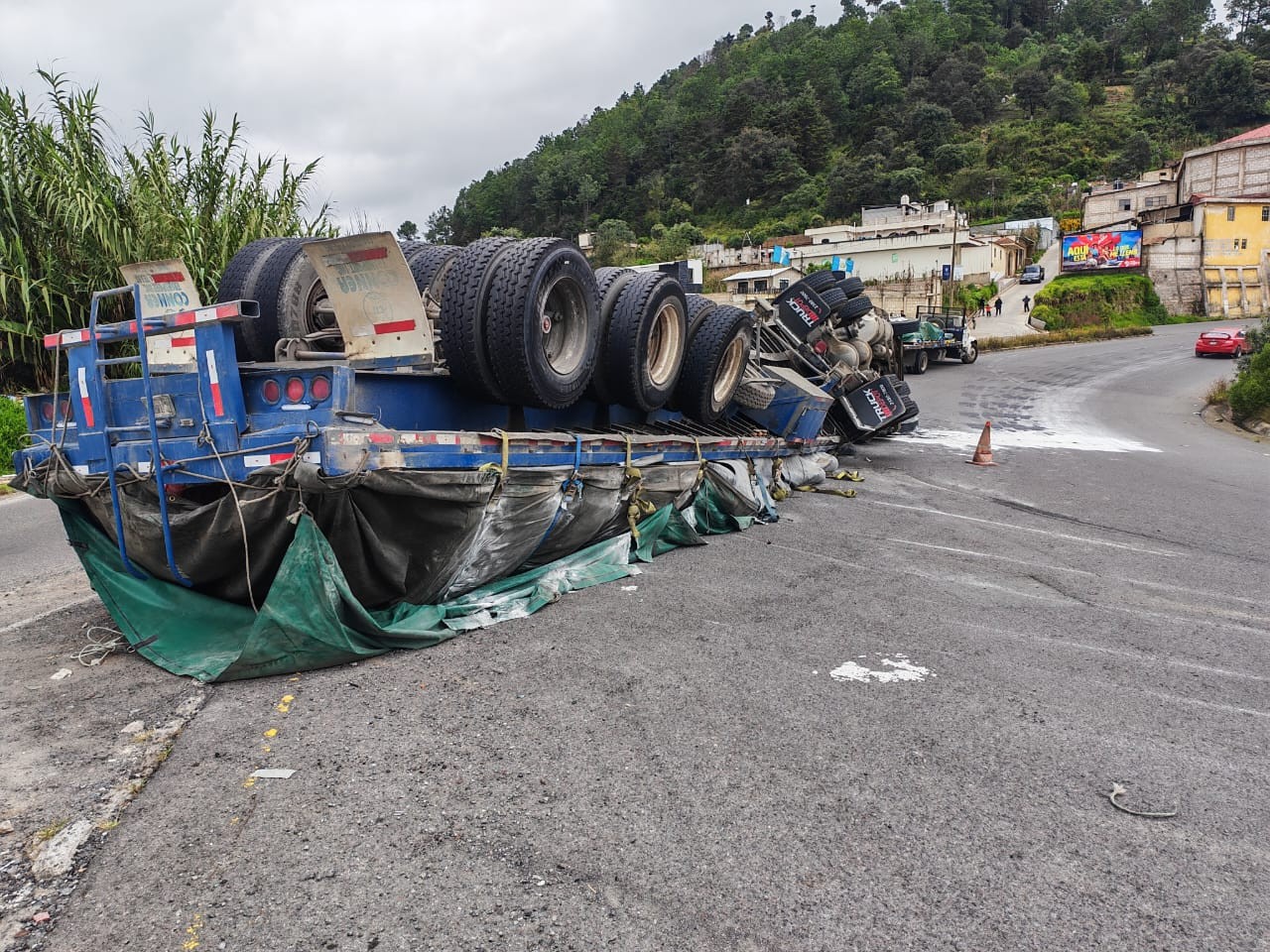 Momentos después, en el kilómetro 187 de la misma ruta, sector conocido como paso a desnivel de Xecanchavox, un tráiler que transportaba material de construcción volcó.