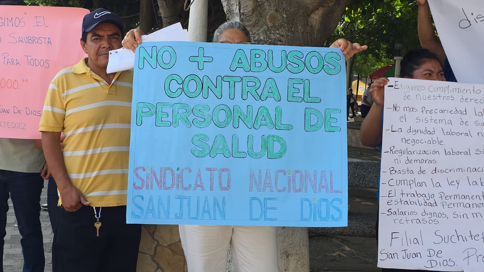 Integrantes del Sindicato de Trabajadores San Juan de Dios se concentraron frente a la Gobernación Departamental de Suchitepéquez para hacer entrega de un memorial de peticiones dirigido al Presidente de la República. La movilización, que se replico a nivel nacional, busca mejoras inmediatas en las condiciones laborales de los salubristas.