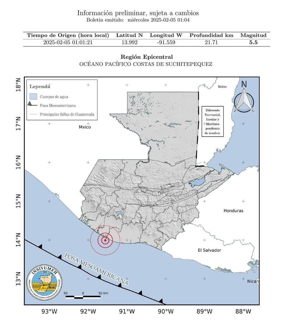 Tuvo una magnitud de 5.5 grados y su epicentro se ubicó frente a las costas del Pacífico, a 60 kilómetros de las cabeceras departamentales de Retalhuleu y Suchitepéquez.