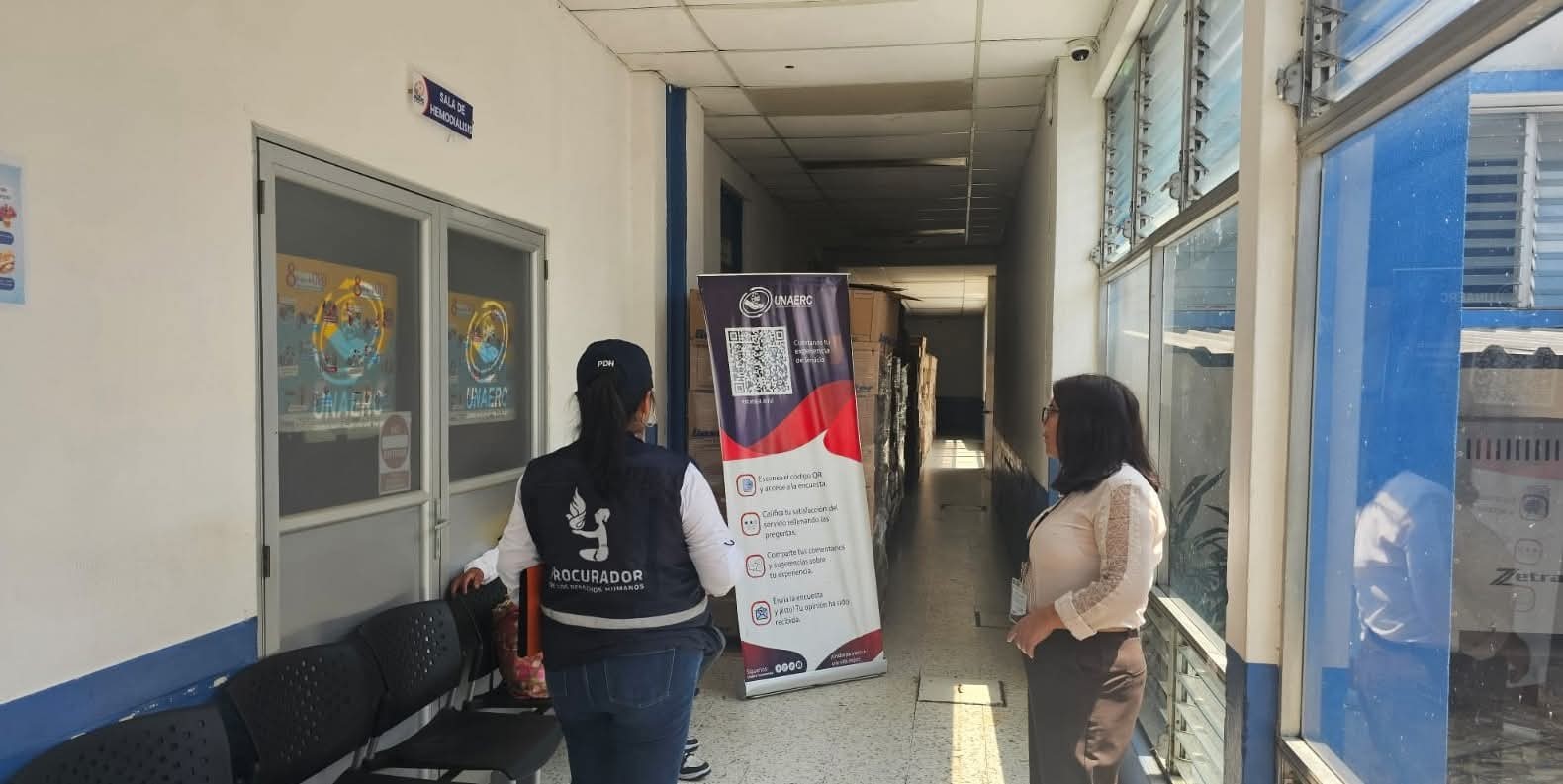 Con el objetivo de garantizar el acceso a la salud de los pacientes con enfermedad renal crónica, personal de la Procuraduría de los Derechos Humanos (PDH) supervisó la atención médica, la disponibilidad de máquinas para hemodiálisis, medicamentos y las condiciones de infraestructura en la sede regional de la Unidad Nacional de Atención al Enfermo Renal Crónico (UNAERC), ubicada en Malacatán, San Marcos.