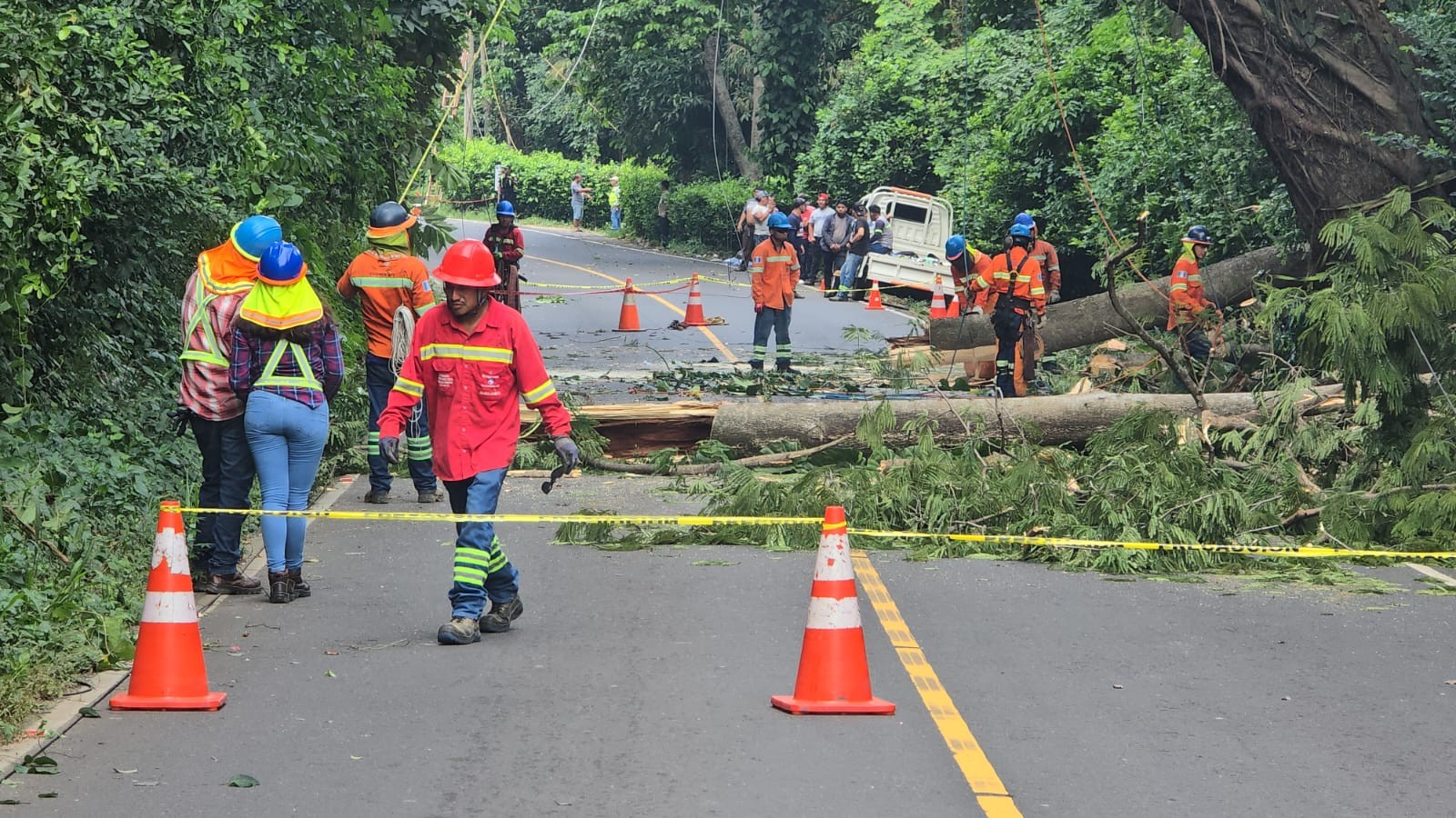 Un árbol de grandes dimensiones de la especie guanacaste, que ponía en peligro a cientos de pilotos que viajan por la ruta que conduce del centro de Coatepeque, Quetzaltenango, hacia la parte baja y el municipio de La Blanca, San Marcos, fue talado.