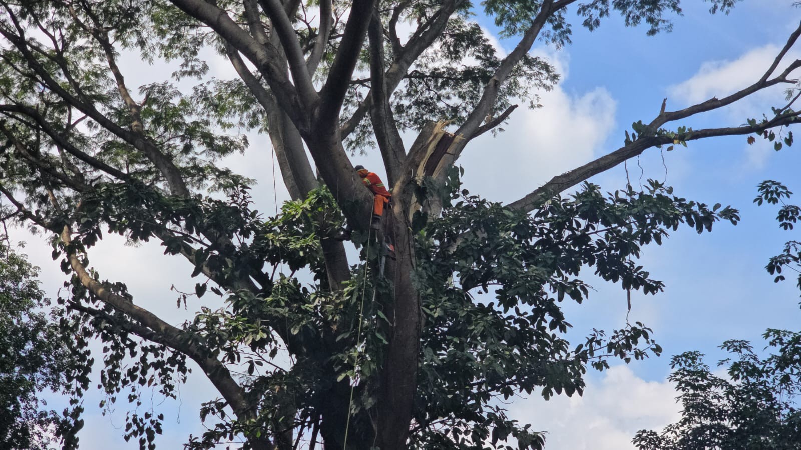 El proceso de tala contó con la participación de agentes de la Policía Municipal de Tránsito y Policía Municipal, debido a que fue necesario bloquear el paso vehicular, lo que generó molestía en algunos conductores.