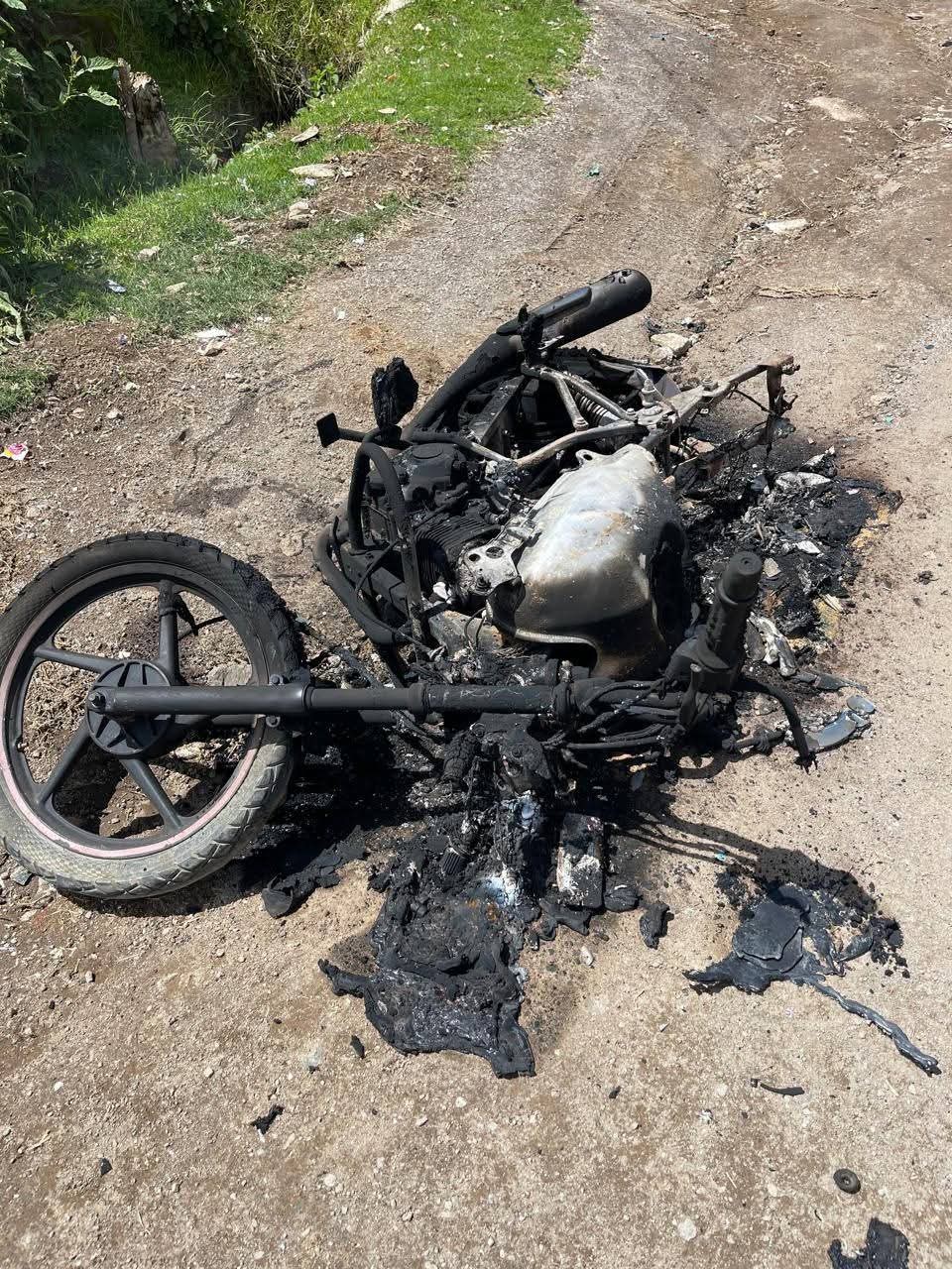 Según el reporte de la Policía Nacional Civil (PNC), los pobladores acusaron a un hombre y a una mujer de sustraer flujos de aire de automóviles. En medio del enojo, una motocicleta que presuntamente pertenecía a los sindicados fue incendiada por la multitud.