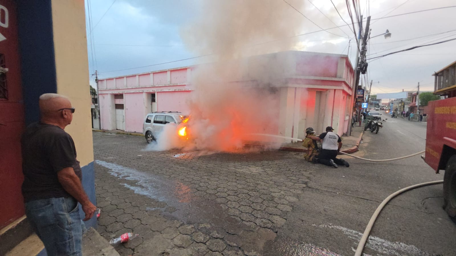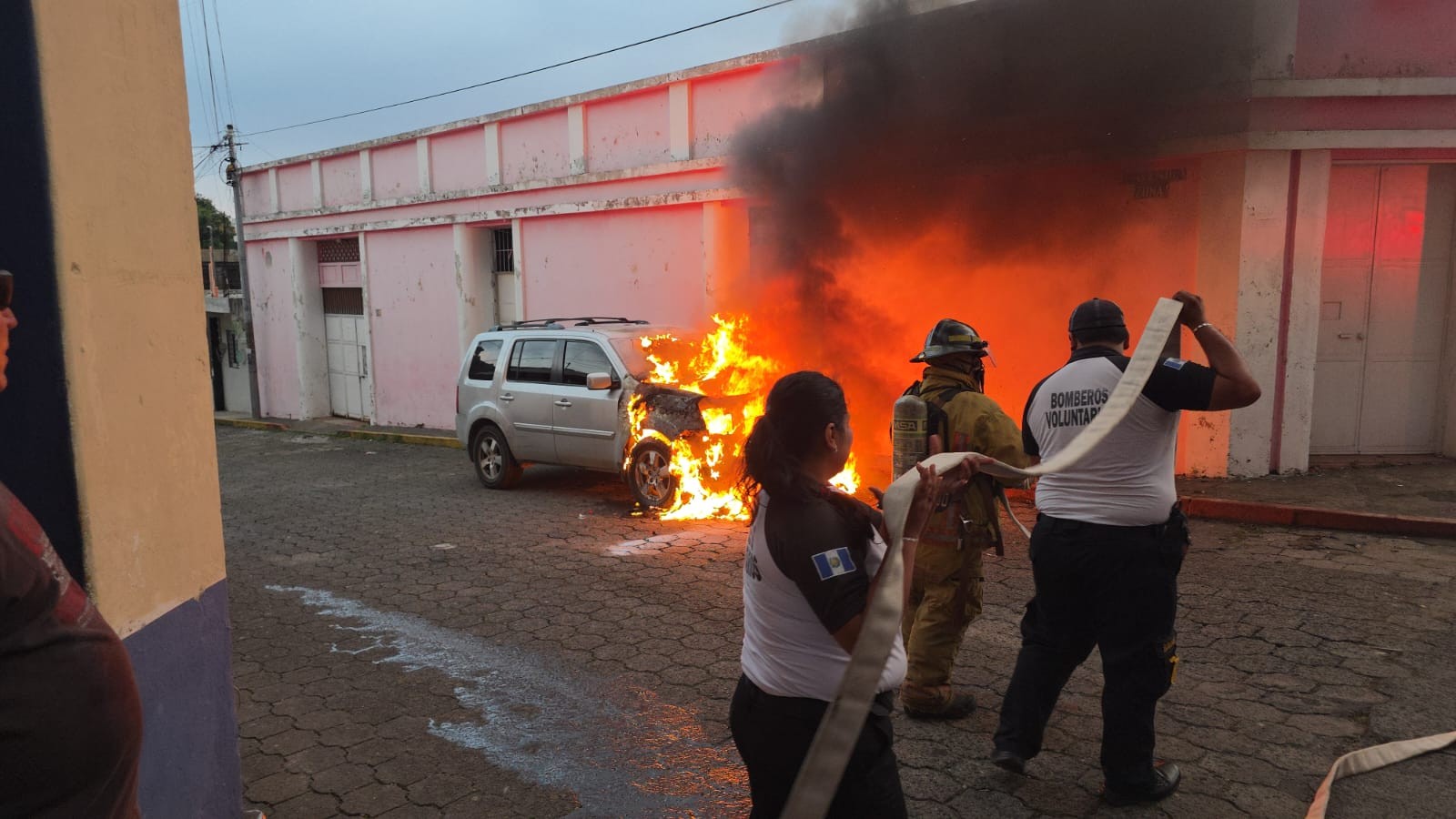 En Mazatenango, un vehículo prendió en llamas la tarde del jueves reciente, dejando pérdidas que superan los Q80 mil.