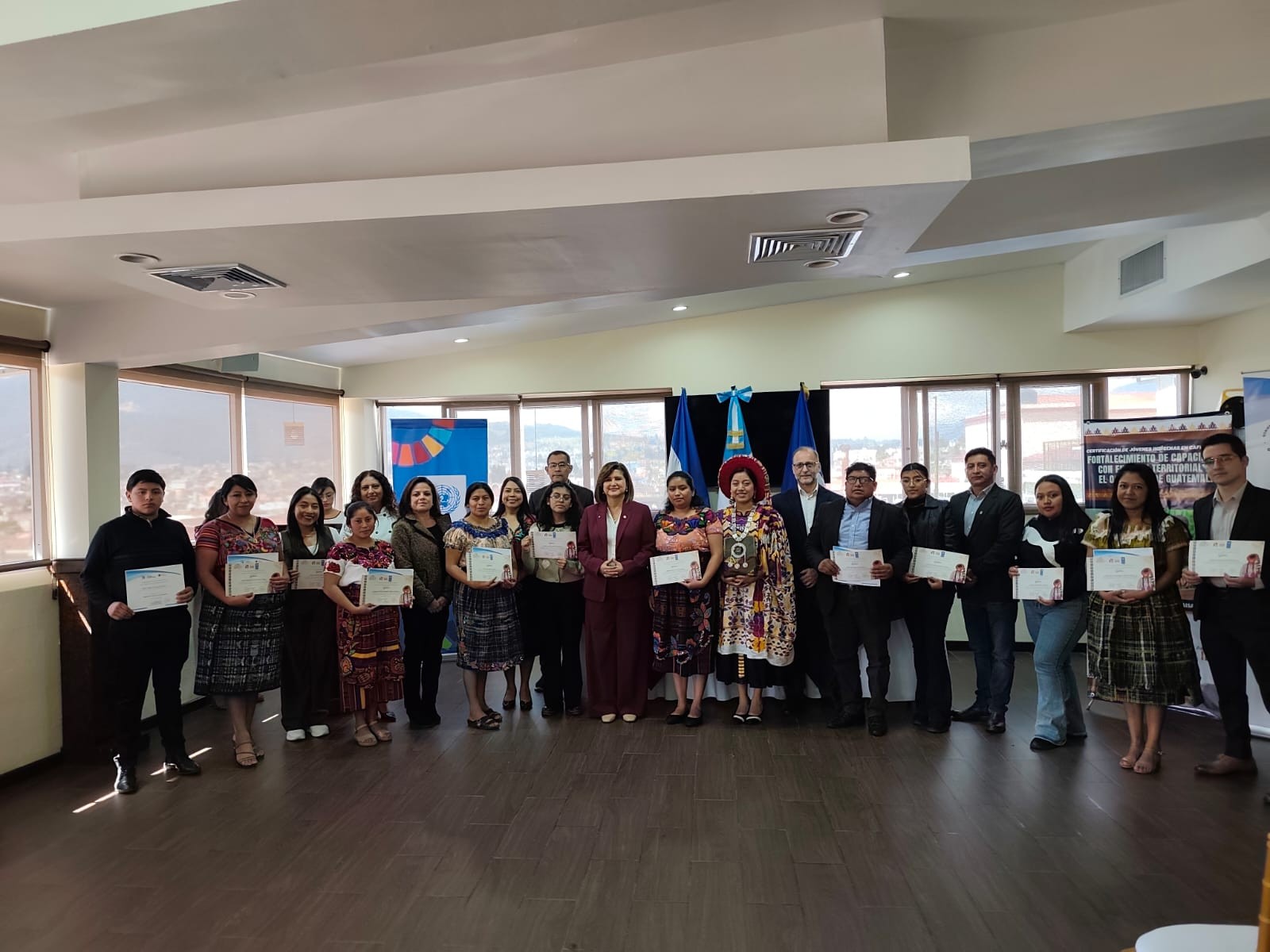 La vicepresidenta de la República, Karin Herrera, participó en la entrega de reconocimientos a 90 jóvenes de Quetzaltenango que concluyeron el programa “Fortalecimiento de capacidades con enfoque territorial en café y cacao”.